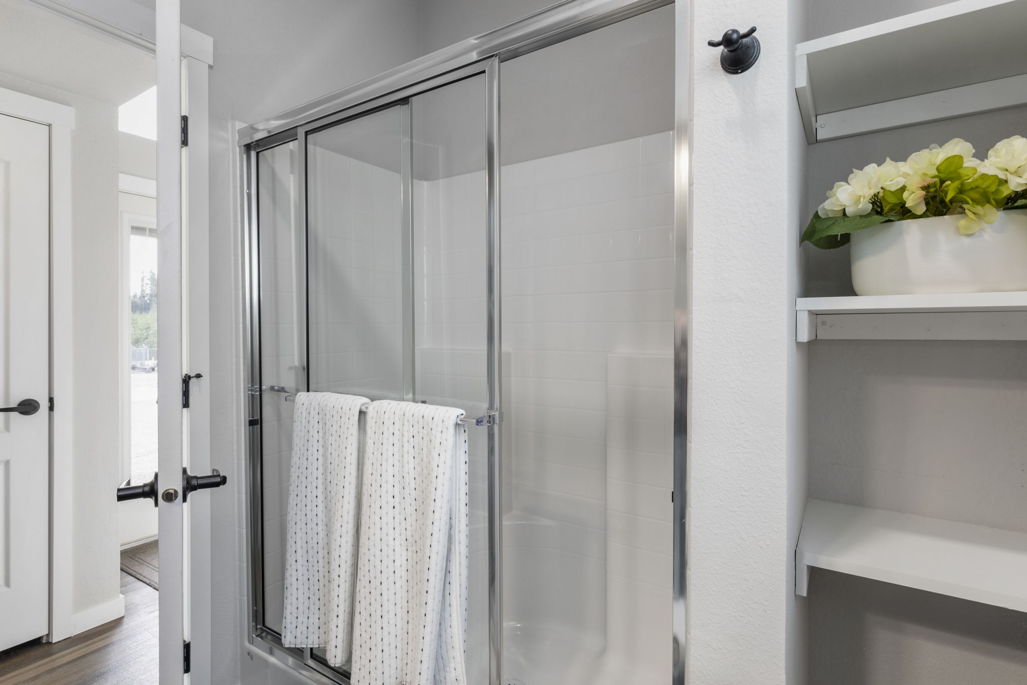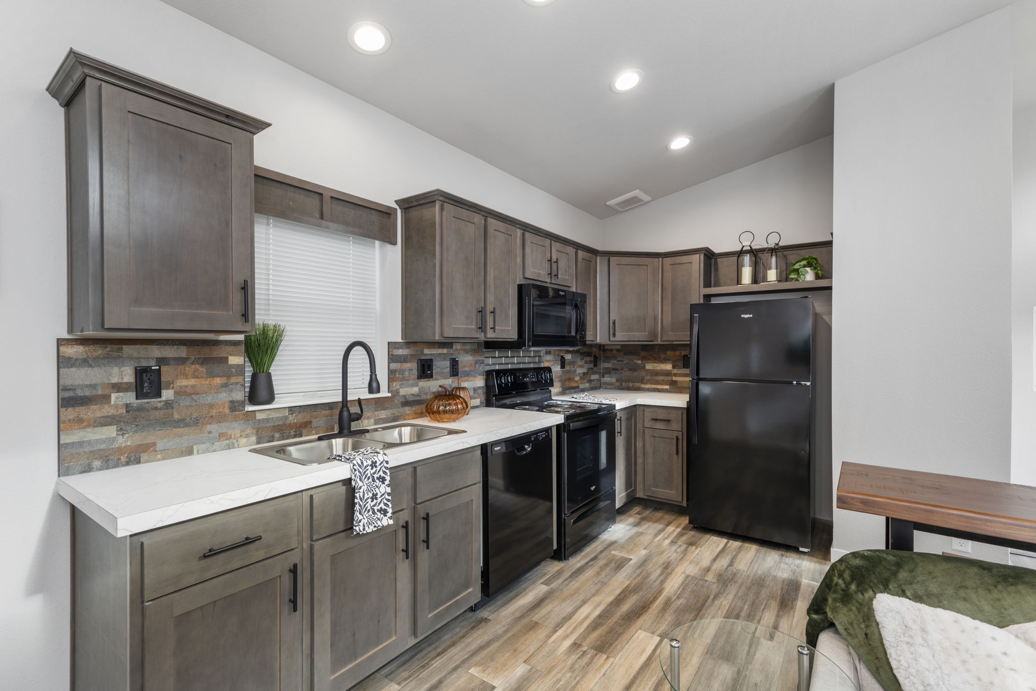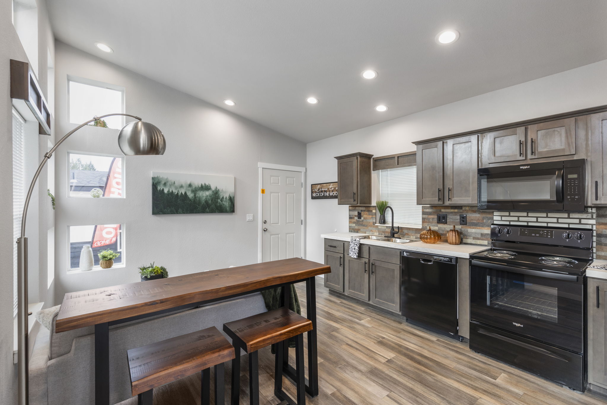Casa de Ceilo exterior, Dark Mode Hardware, Full-View Front Door w/ Blind, Frost Free Hose Bibb, Vinyl Flooring Throughout, Upgraded Interior Paint, 3 1/4” Baseboard Throughout, Tile Backsplash Extended w/ Accent, Dishwasher, Microwave Hood, Additional Can Lights, Dimmer Switch, 3 Gang TV and Phone Box, 60” Shower w/ Seat and Door.