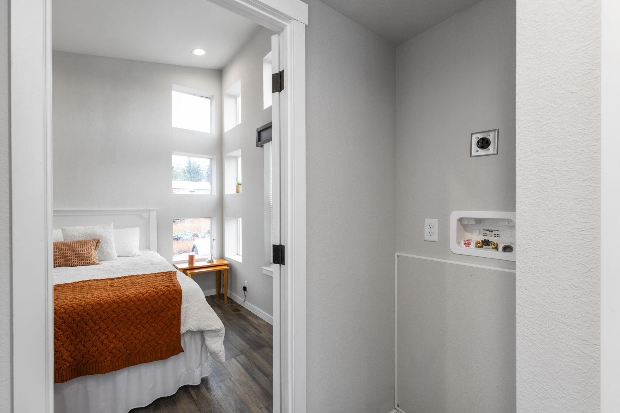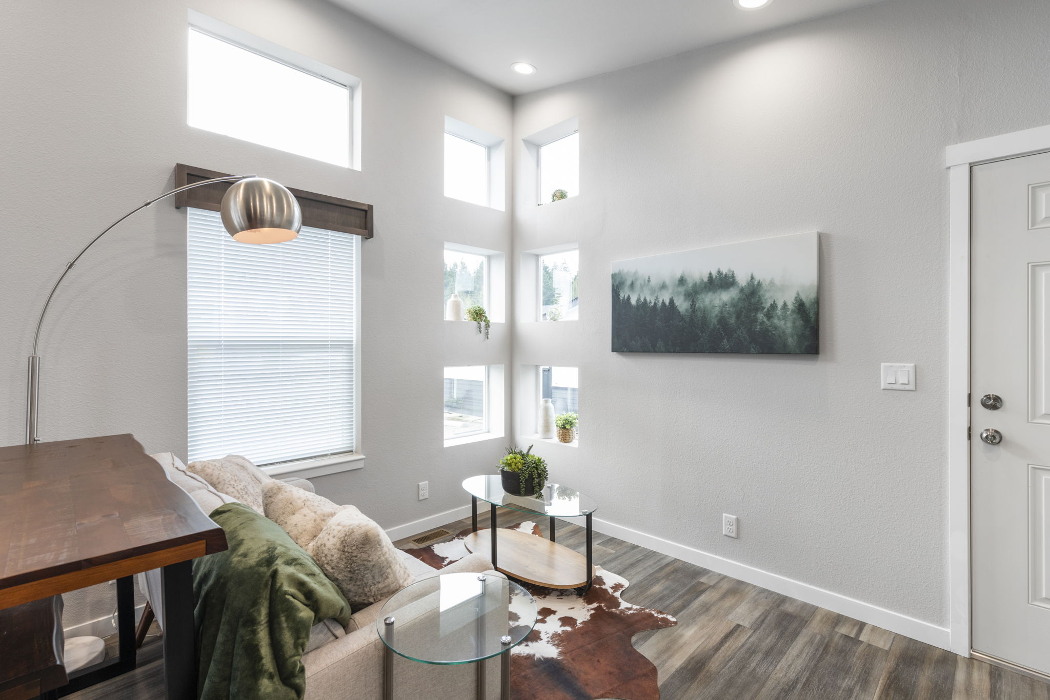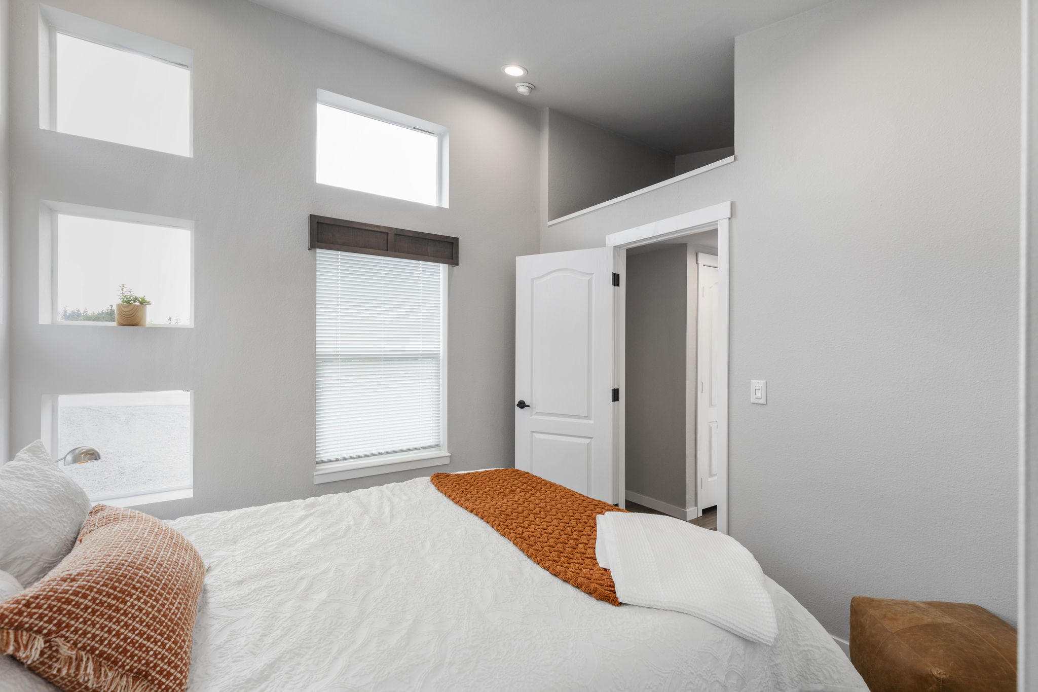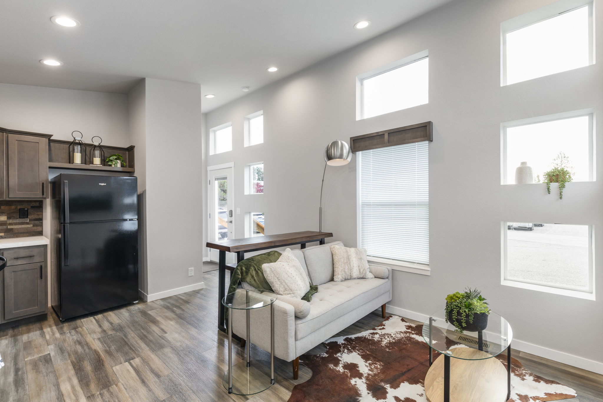 Casa de Ceilo exterior, Dark Mode Hardware, Full-View Front Door w/ Blind, Frost Free Hose Bibb, Vinyl Flooring Throughout, Upgraded Interior Paint, 3 1/4” Baseboard Throughout, Tile Backsplash Extended w/ Accent, Dishwasher, Microwave Hood, Additional Can Lights, Dimmer Switch, 3 Gang TV and Phone Box, 60” Shower w/ Seat and Door.